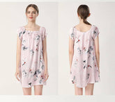 Floral Print Silk Nightgown For Women Loose Silk Nightdress - Pink