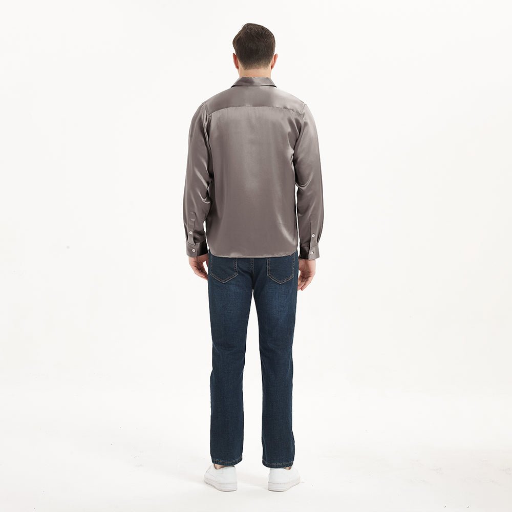 A men's long sleeve silk shirt with a hidden placket offers a sleek, sophisticated look. The smooth silk fabric adds luxury and comfort, making it ideal for both formal and smart-casual occasions.