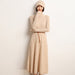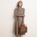 Wrap yourself in luxury with this women’s ribbed knit cashmere midi dress, crafted from premium cashmere for supreme softness and warmth. Featuring a sleek mock neck, long sleeves, and a flattering ribbed pattern, this dress combines elegance with cozy comfort. The beige neutral tone makes it easy to style for work, weekends, or special occasions.