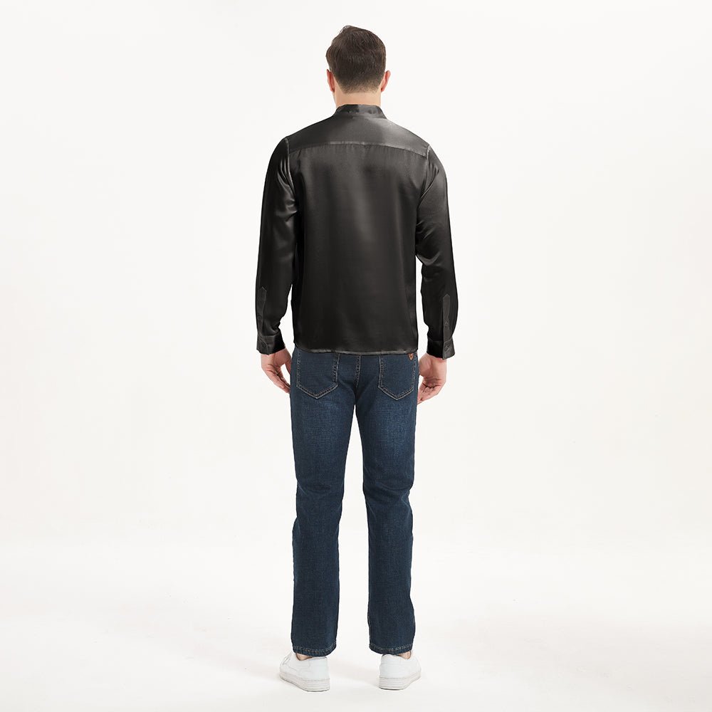 Luxury Silk Henley Shirts For Men Pure Silk Stand Collar Top