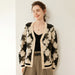 This button-up jacquard cashmere cardigan showcases a bold, vintage-inspired pattern, adding a touch of artistic flair to your wardrobe. Featuring a deep V-neckline and contrast ribbed trim, it offers a structured yet relaxed silhouette for effortless layering. The gold-tone buttons add a refined accent, while the dropped shoulders and oversized fit enhance its cozy appeal.